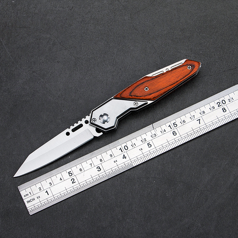 Folding knife outdoor high hardness special warfare self-defense knife field tactical knife wooden handle folding fruit knife