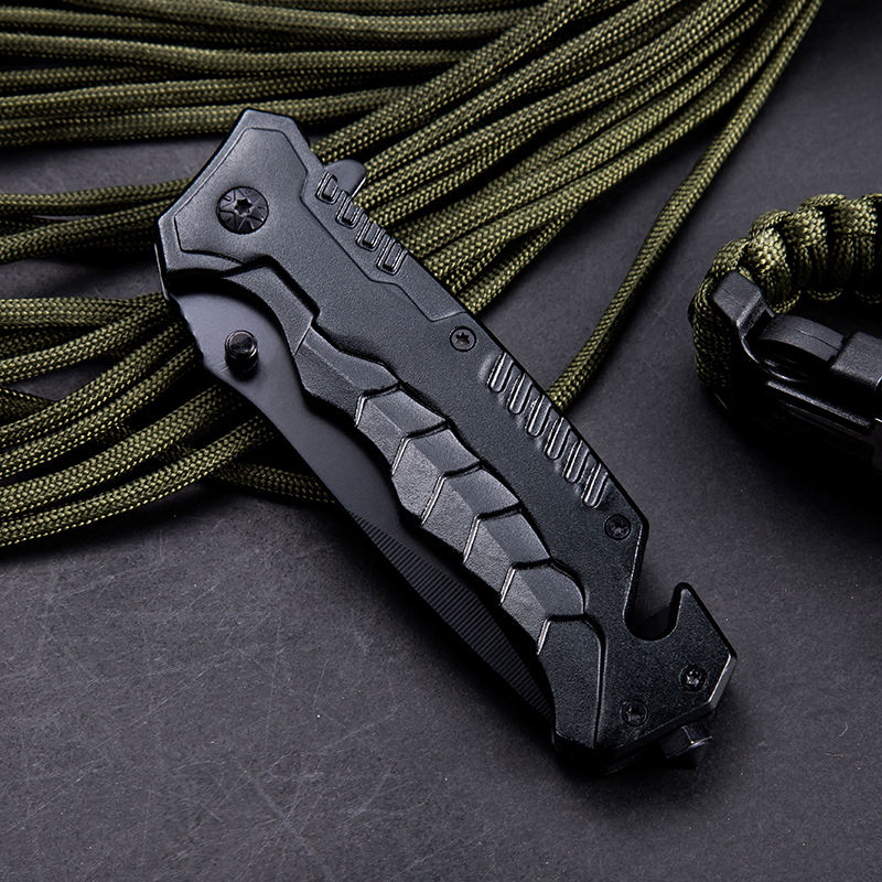 Dropshipping products 2022 black aluminum handle outdoor pocket hunting folding survival knife with glass breaker