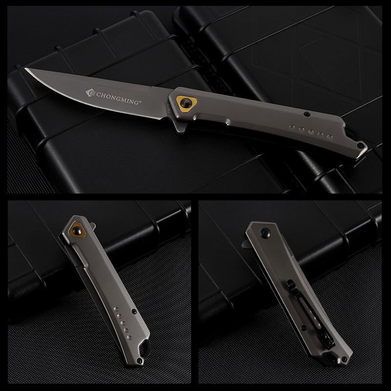 Promote products titanium blade forged tactical folding pocket knifes survival knife hunting outdoor camping with logo