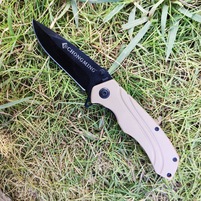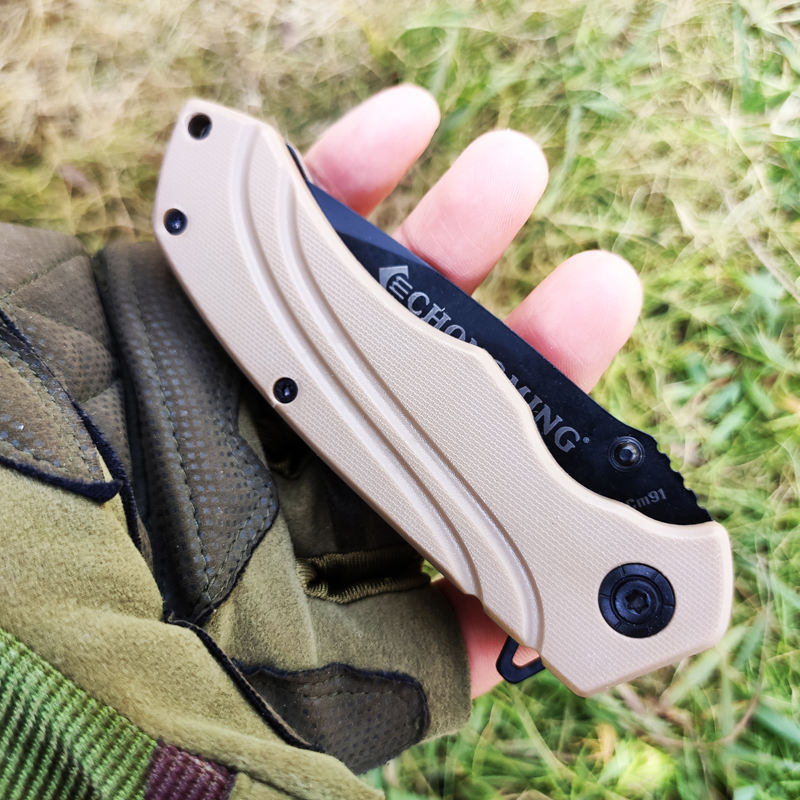 Ready to ship cheap custom combat outdoor hunting camping folding knife for pocket plastic handle