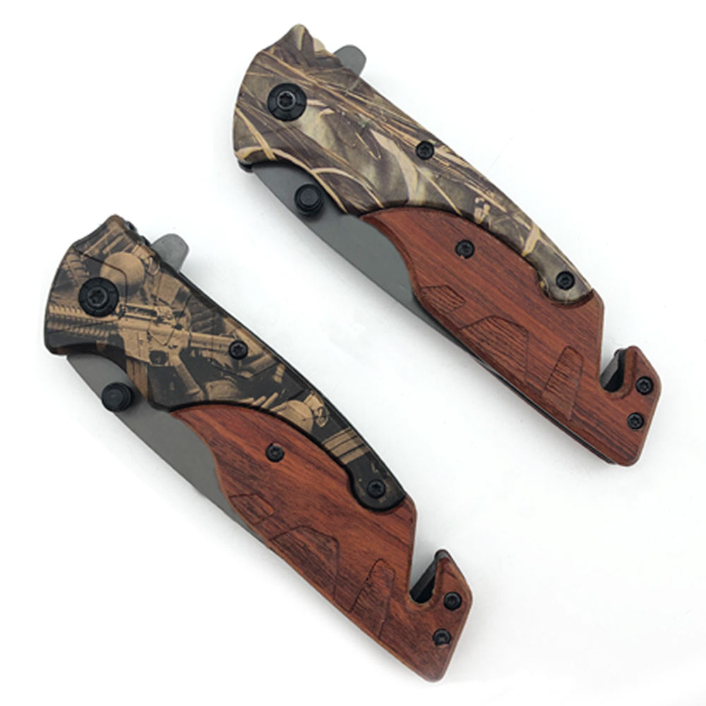 Top selling Pakistan hunting tactical survival folding camping pocket knife wood handle