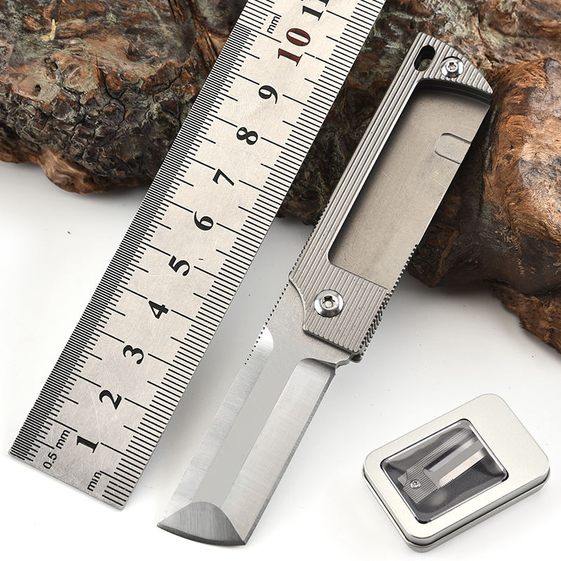 Aluminum window box packing blade pocket handmade folding steel titaniums handle d2 small knife