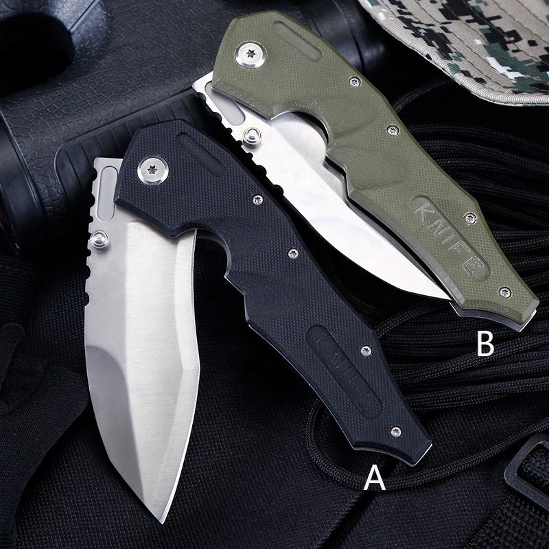 Outdoor camping tactical folding utility tool G10 handle walking survival pocket knife with back clip
