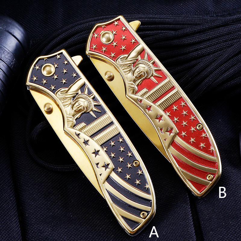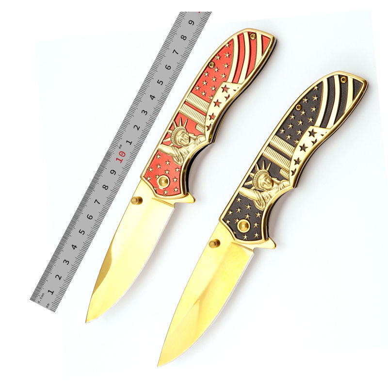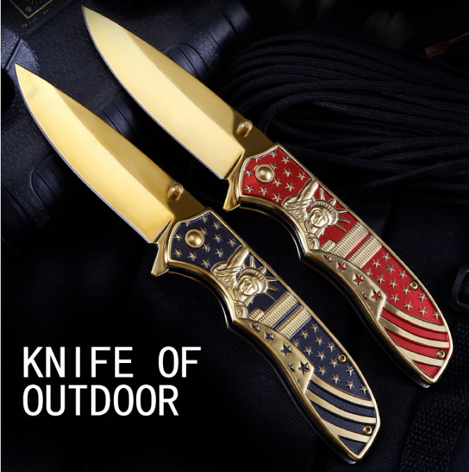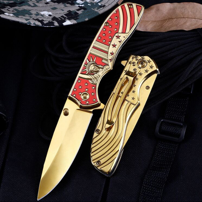 Creative design US style gold titanium handle outdoor tactical stainless steel gift folding knife