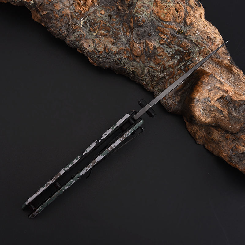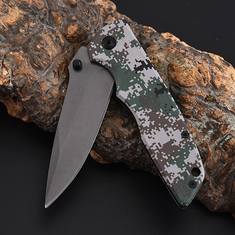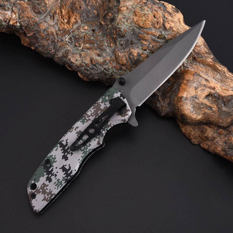 Outdoor Camping Tools Folding Pocket Knife Gray Titanium Coated Tactical Survival Hunting Knives With Camouflage Handle