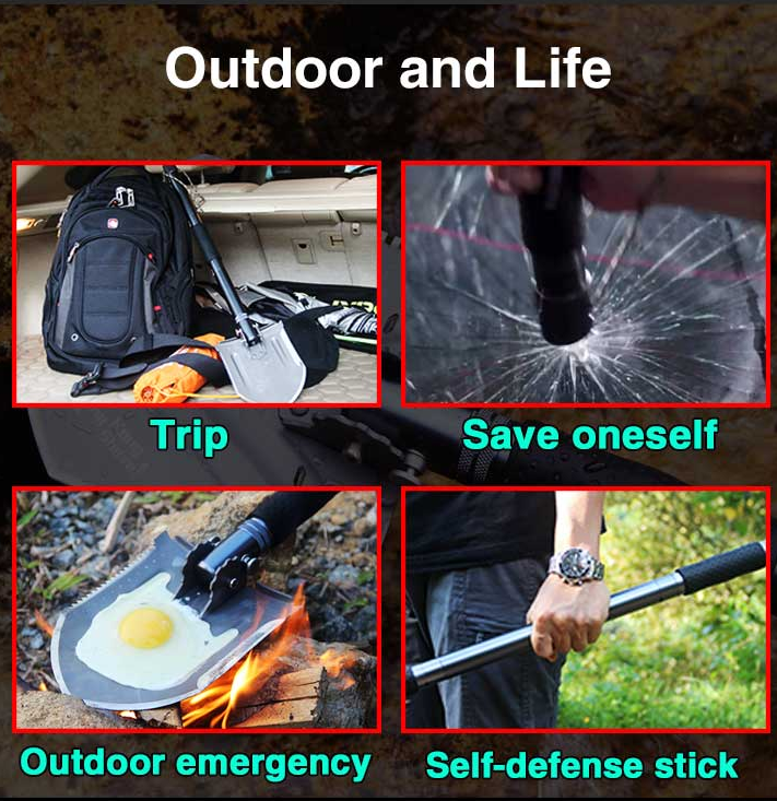 Tactical survival shovel aluminum handle camping multifunctional shovels tool set