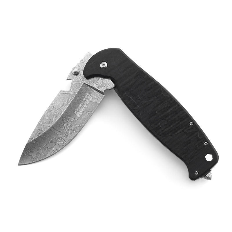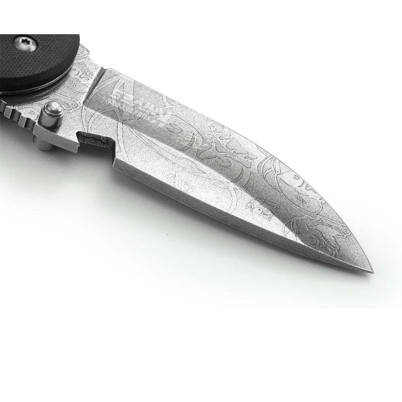 Engraving fashion pattern blade G10 handle folding knife can be used for men gifts