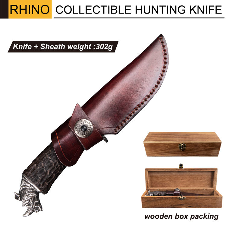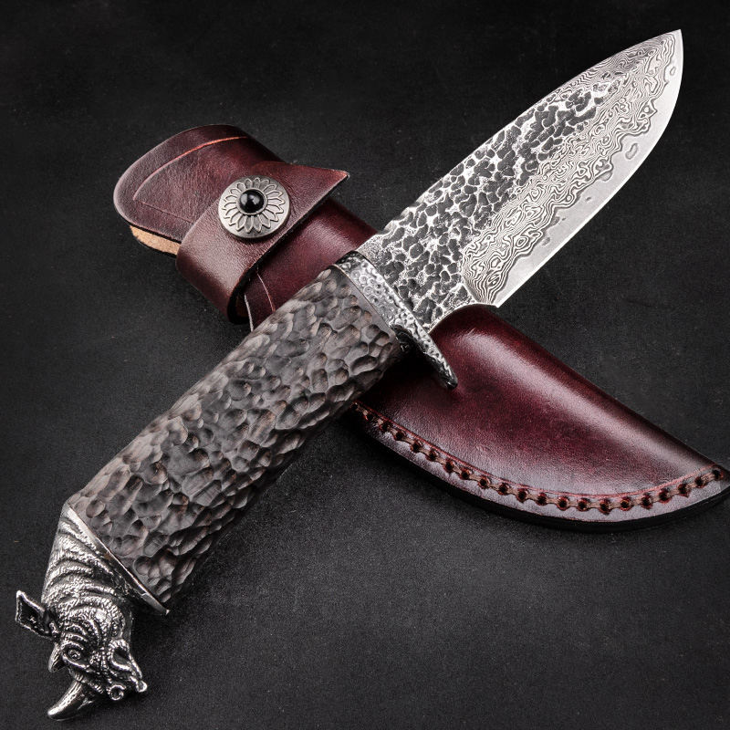 Hammered damascus with Rihno ebony wooden handle fixed blade handmade knife tactical Hunting Camping Survival Outdoor Knife