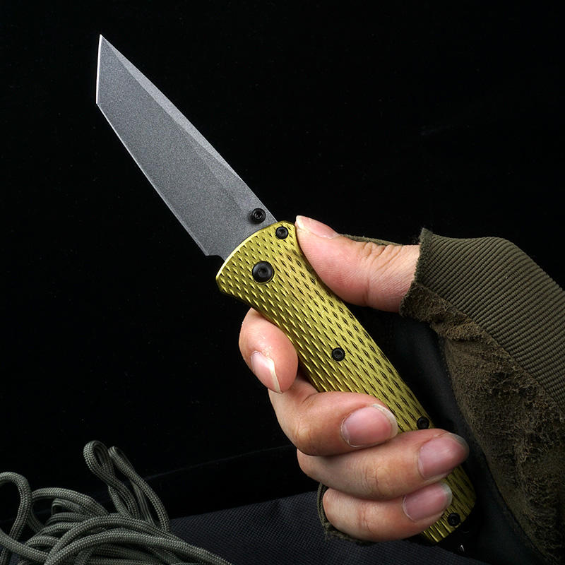 stainless steel EDC folding pocket knife with aluminum handle hunting survival camping hiking self defense rescue knife bench