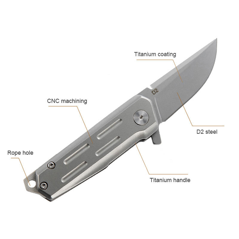 High quality D2 Blade small knife for outdoor camping survival hunting self-defense Titanium handle folding knife