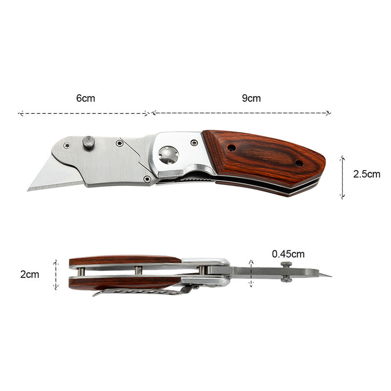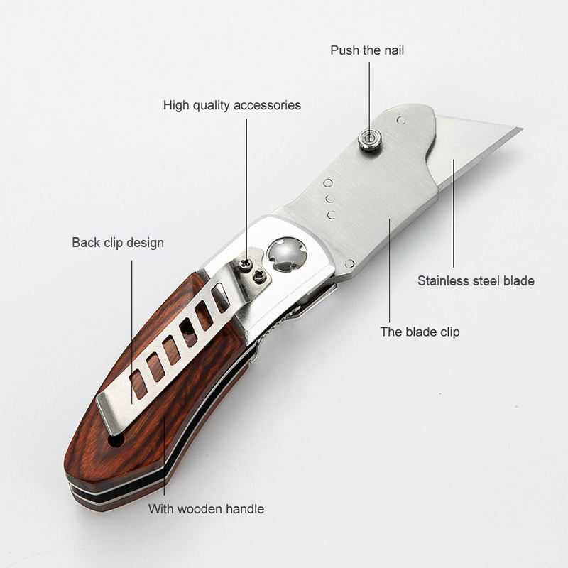 Customized box cutter utility folding knife art knife stainless steel cutting blade wood handle pocket knife