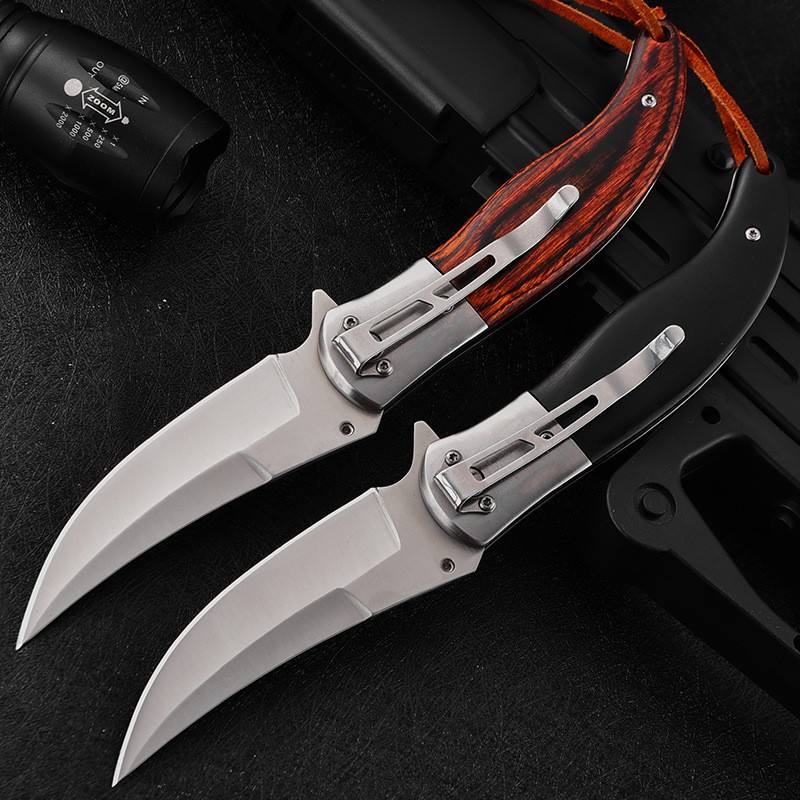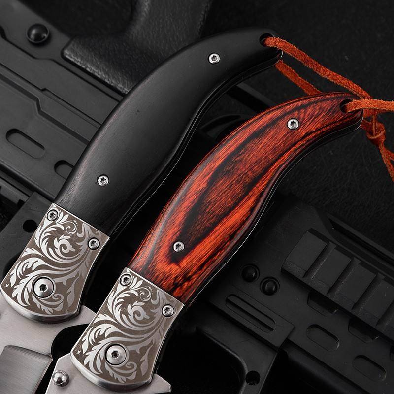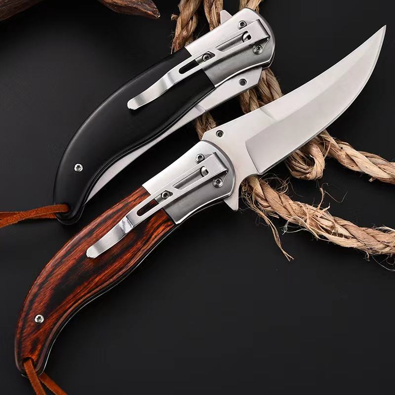 Outdoor Hunting Knife Stainless Steel Folding Portable Multifunctional Pocket Knife Wood Handle Knives for every day use