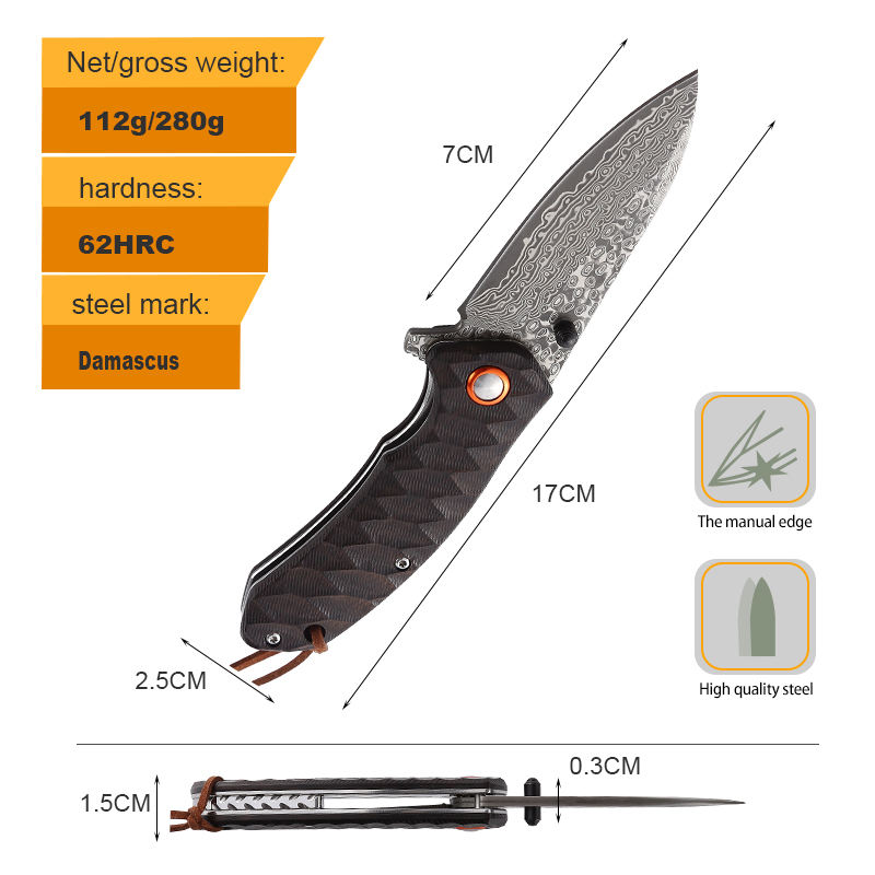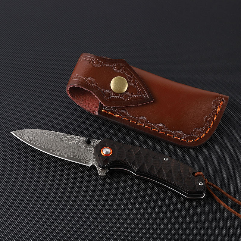 6.7 inches new style ebony handle pocket outdoor folding knife damascus hunting knife with gift box and k sheath