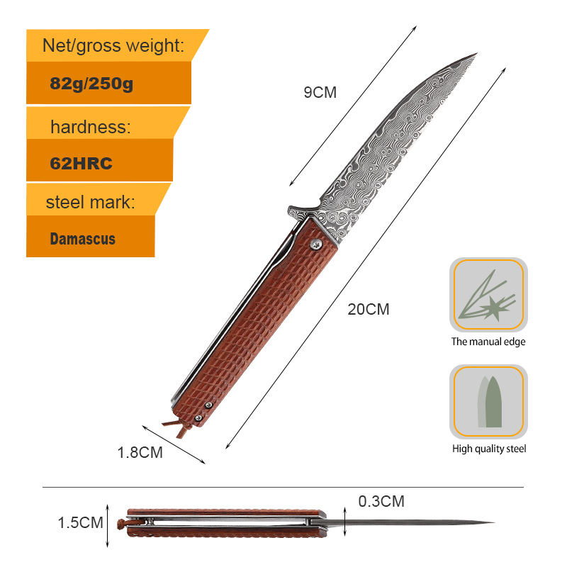 New style damascus steel hunting knives folding pocket knife with custom handle for wholesaler retailers