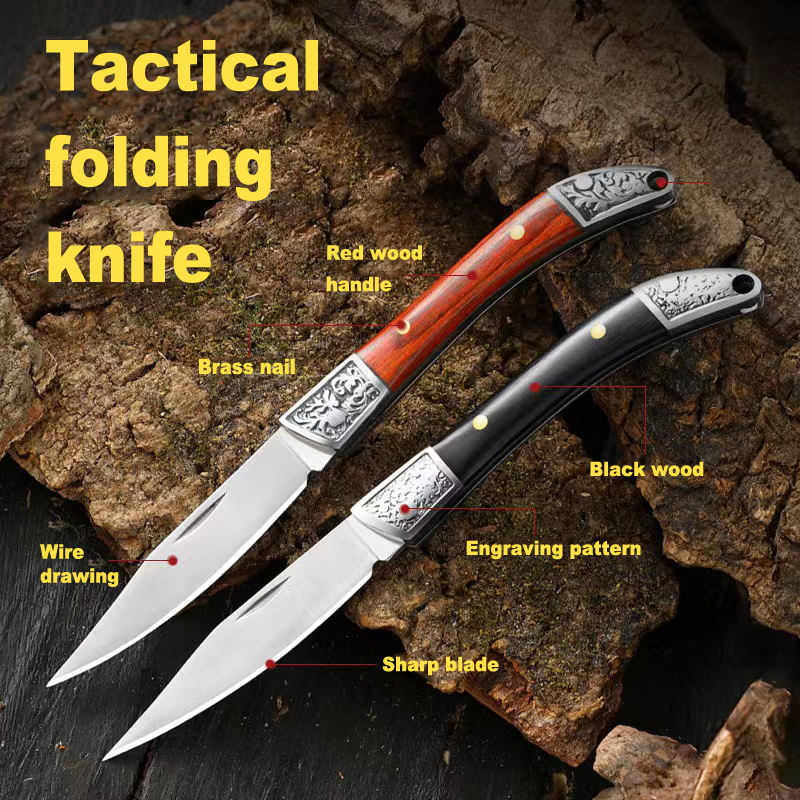 Exquisite Good Quality Easy To Carry Folding Pocket Knife EDC Outdoor Camping Tactical Knife With wooden Handle