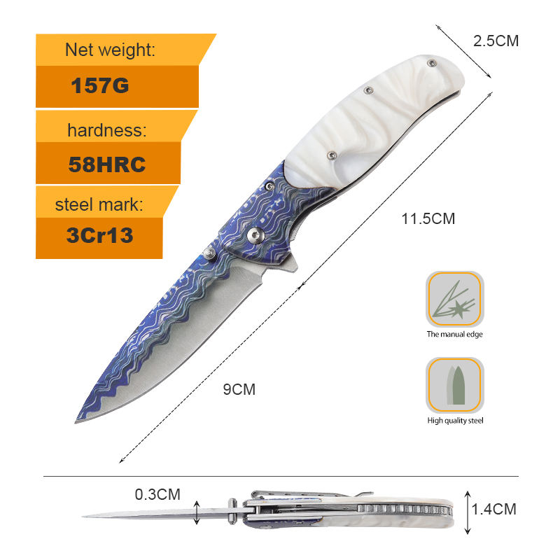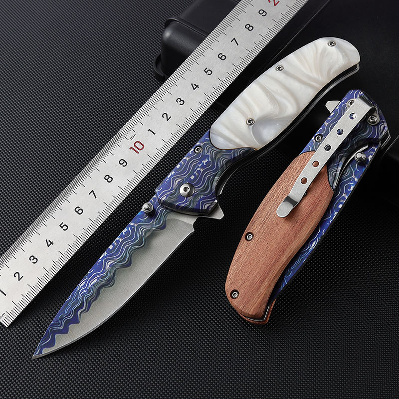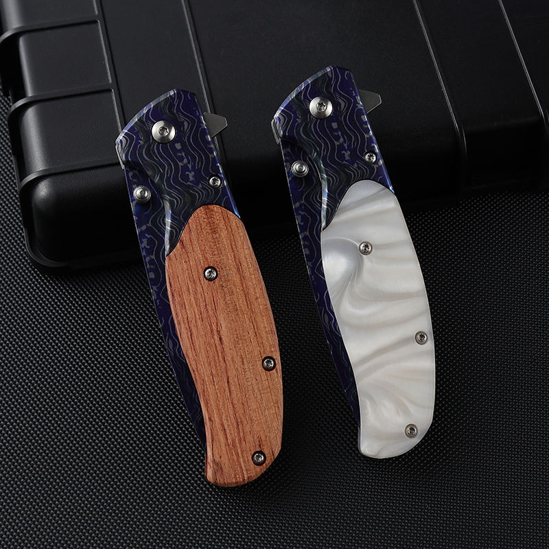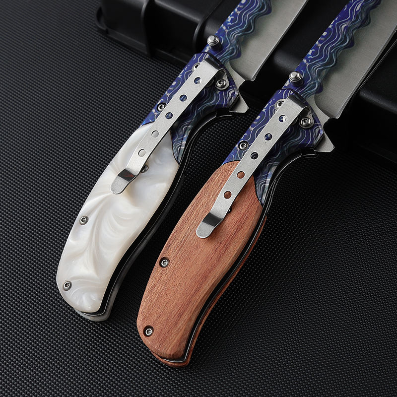 Top grade resin stainless steel wave print outdoor camping knife 3CR13MOV pocket folding knife