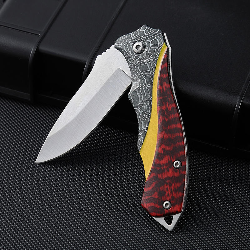 Folding Small Pocket Knife Stainless Steel Blade Survival Hunting Tactical Knife With All steel 3D Printing Handle Knifes