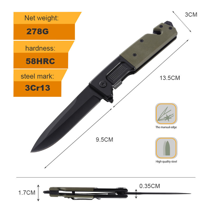Wholesale Blackening 3cr13 Stainless Steel Blade Green G10 Handle Outdoor Pocket Folding Knife Folded