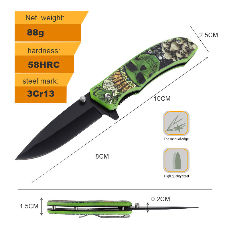 Innovative New Collection Outdoor Camping Knife Fluorescent PP 3D printing Handle EDC Survival Folding Knife