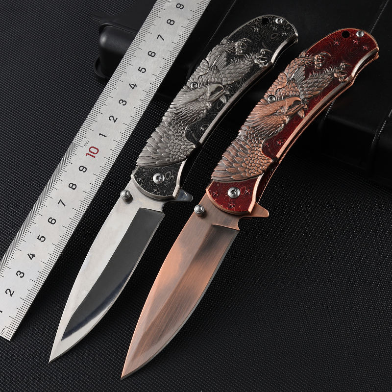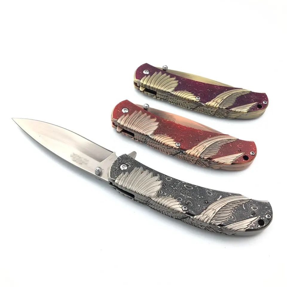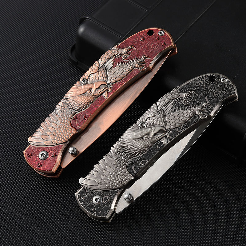New design embossed flying eagle all steel tactical folding knives pocket knife colorful stainless steel knife