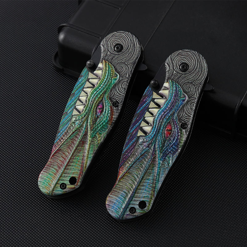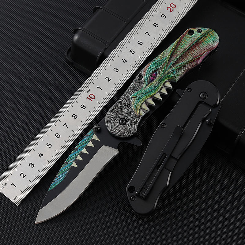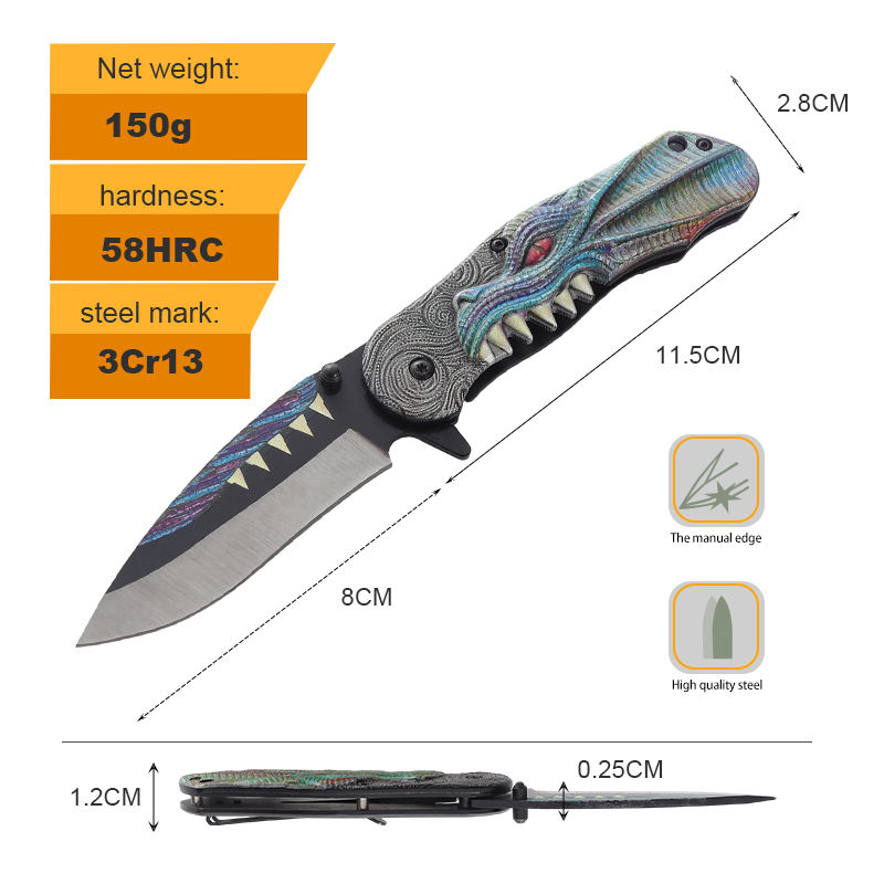 Tiger Tooth 3D stainless steel handle 3CR13 blade folding pocket knife for self defense knife hunting with black box
